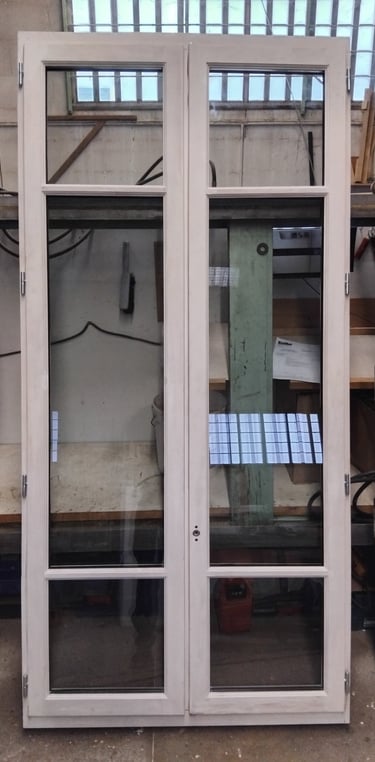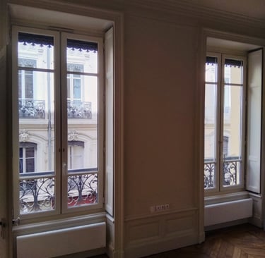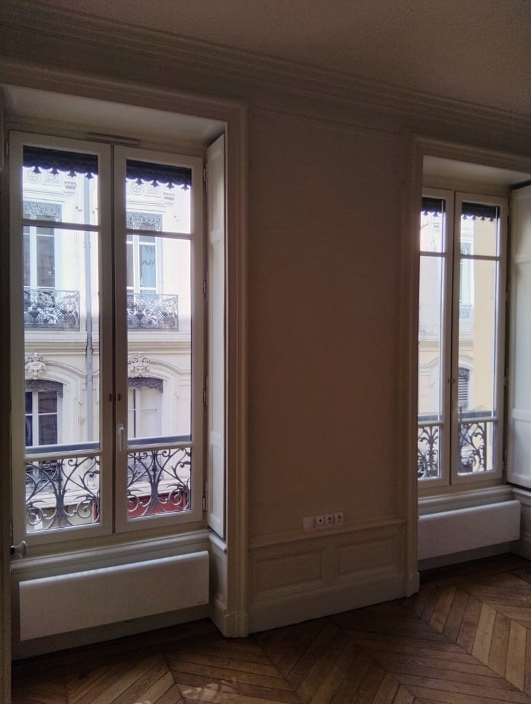 Fabrication et pose de menuiseries exterieures en sipo massif pour un appartement lyonnais.
