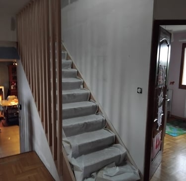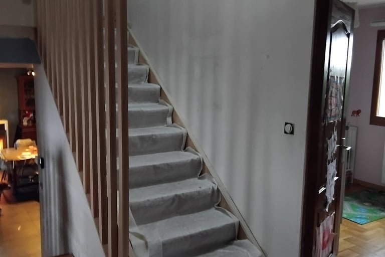 Fabrication et pose d'un escalier droit avec habillage de claustras